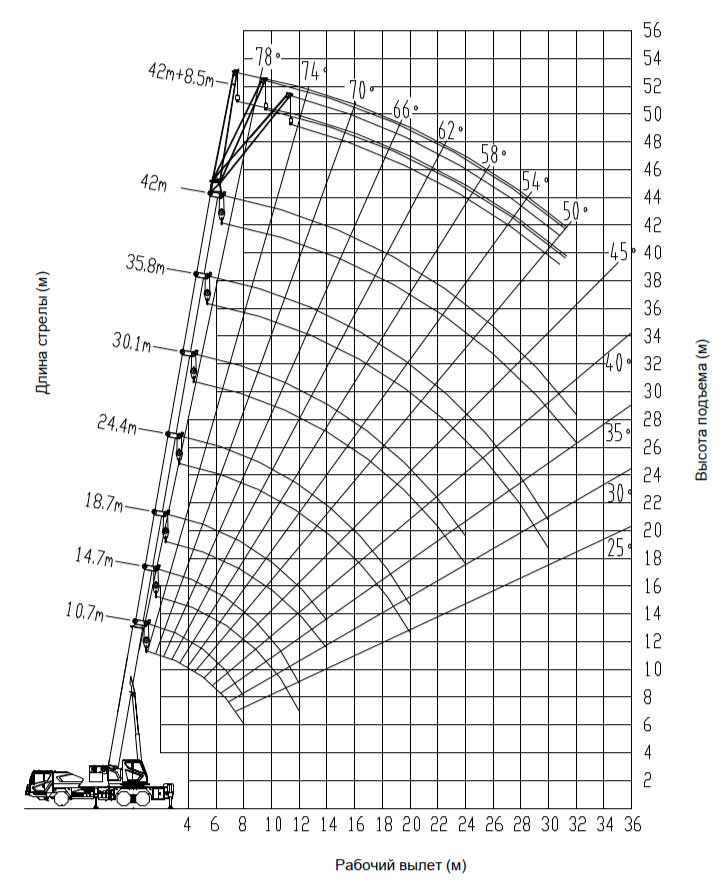 | Высота подъема, м | 34 м (44,5 м с гуськом) |